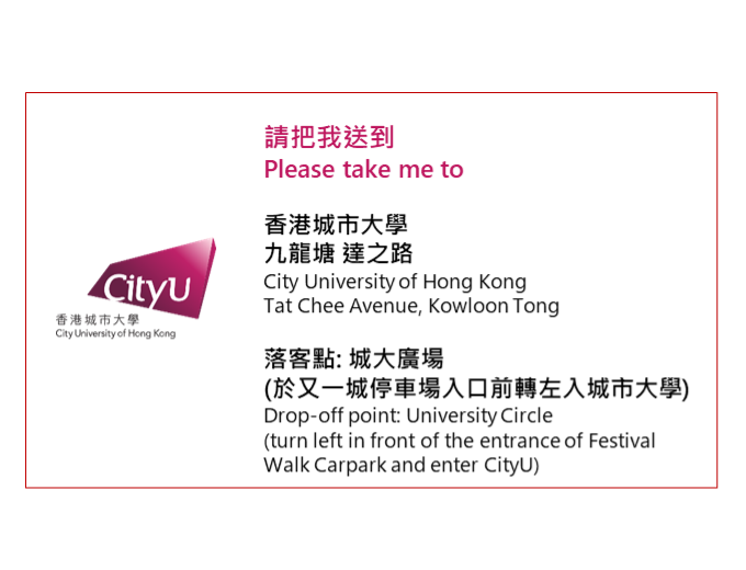 - Show the CityUHK taxi card to taxi driver